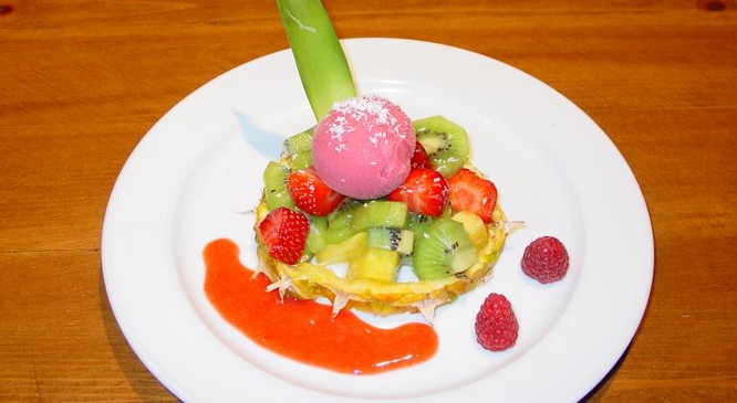 by spectacular mountain views. It offers both fixed and à la carte menus.